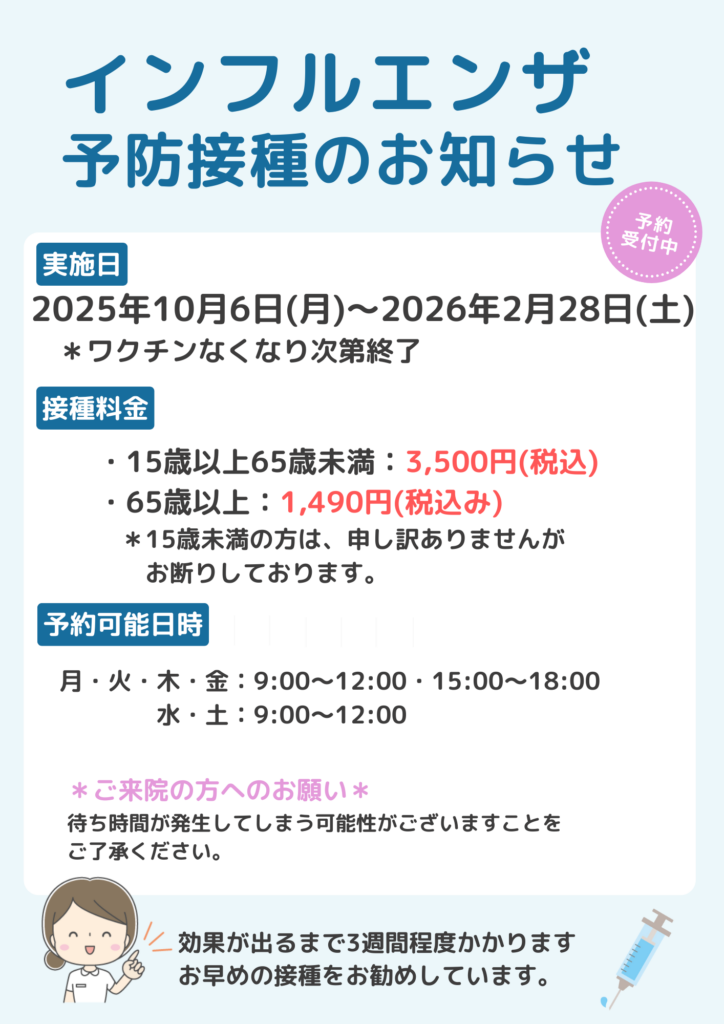 予約は当院の受付、もしくは当院へのお電話のみ可能となります。
