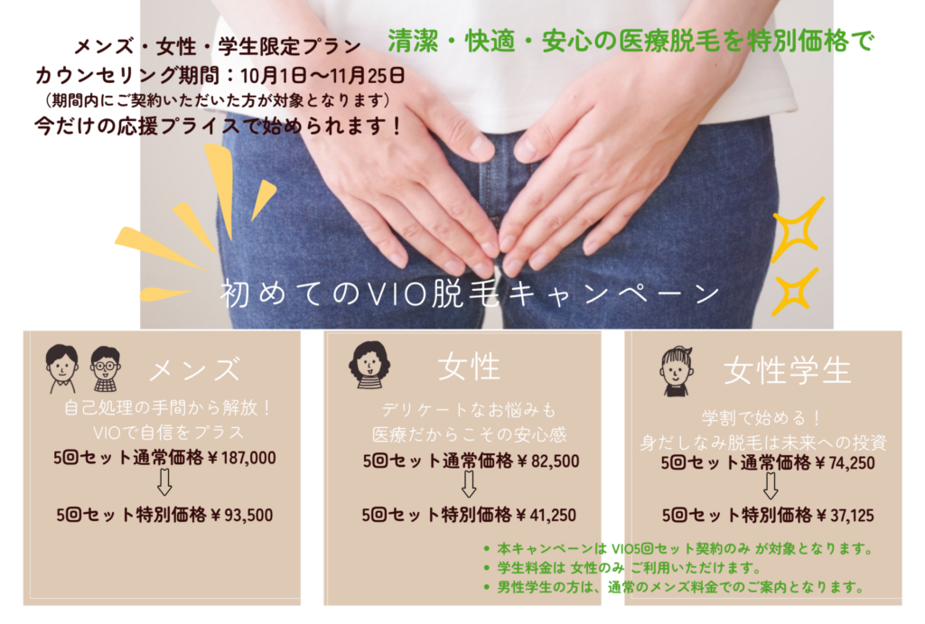 📢【10月1日~11月25日限定】 初めてのVIO脱毛キャンペーンのお知らせ